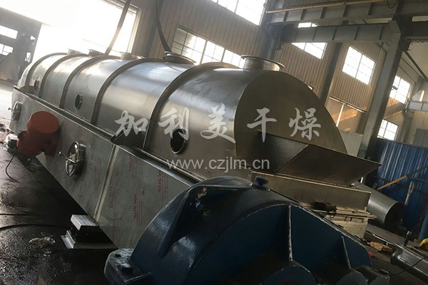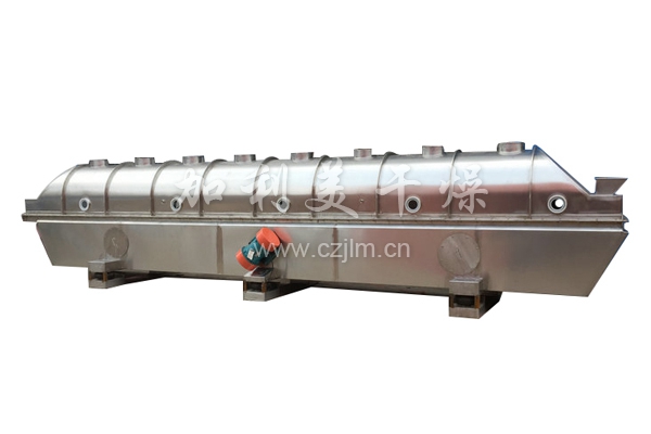 物料自進料口進入機內(nèi),在振動力作用下,物料沿水平流化床拋擲,向前連續(xù)運動,熱風(fēng)向上穿過流化床同濕物料換熱后,濕空氣經(jīng)旋風(fēng)分離器除塵后由排風(fēng)口排出,干燥物料由排料口排出。